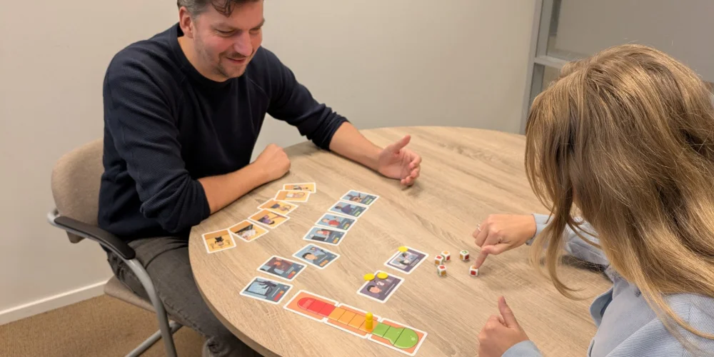 Tegelijkertijd leerde Floor meer over serious gaming. Dat brengt spelelementen, gedragsverandering en kennisoverdracht samen waarbij deelnemers worden gestimuleerd om abstracte concepten beter te begrijpen en te onthouden.