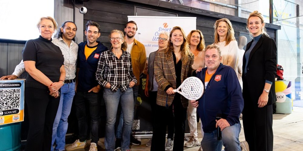Wethouder Eva Oosters kreeg een door de partijen gesigneerd padelracket overhandigd. Hiermee sloeg zij symbolisch de sportcoalitie Utrecht haar nieuwe termijn in. ‘Ik vind het geweldig dat door het sportaanbod van de Sport Coalitie mensen in beweging komen en de drempel om te gaan sporten verlaagd wordt.’